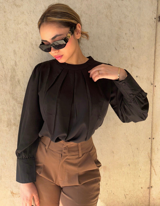 SAVE 49%Pleated Neck Bishop Sleeve Blouse