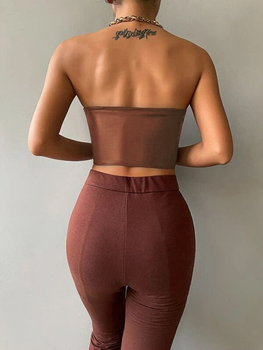 SAVE 45%Hot Brown Leather Corset Tube Top