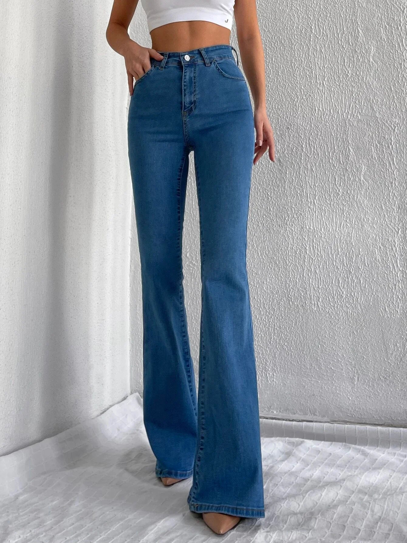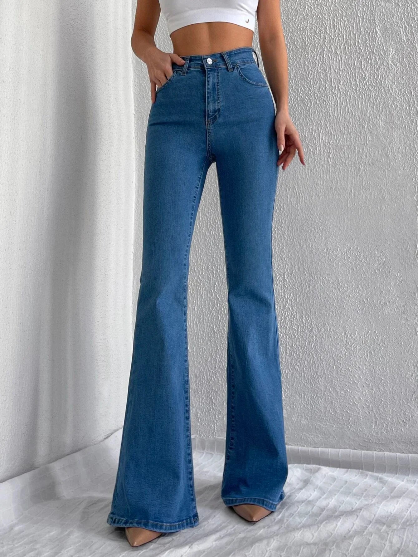 If you're looking for jeans that will give you a high-waisted, chic & stylish look, these are the ones to get. Amp up your outfit of the day with these jeans. Featuring Aqua Blue bootleg high rise jeans.