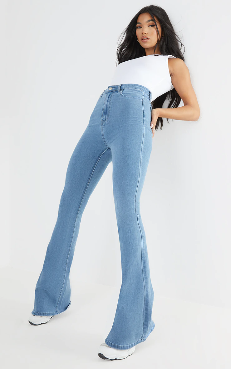 Crafted to hug and flare in all the right places, these jeans strike the perfect balance between stretch, shape, and softness. The baby blue tone keeps it fresh, while the flared leg adds instant length. A modern classic with all-day comfort.