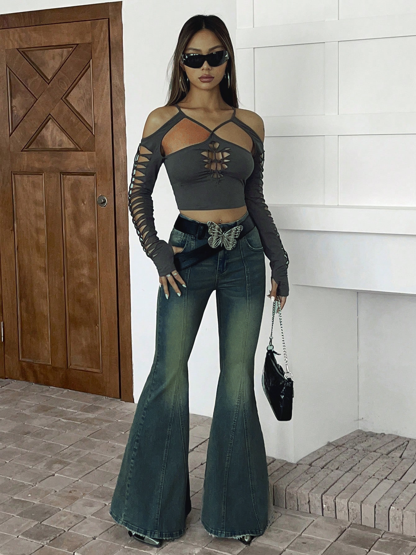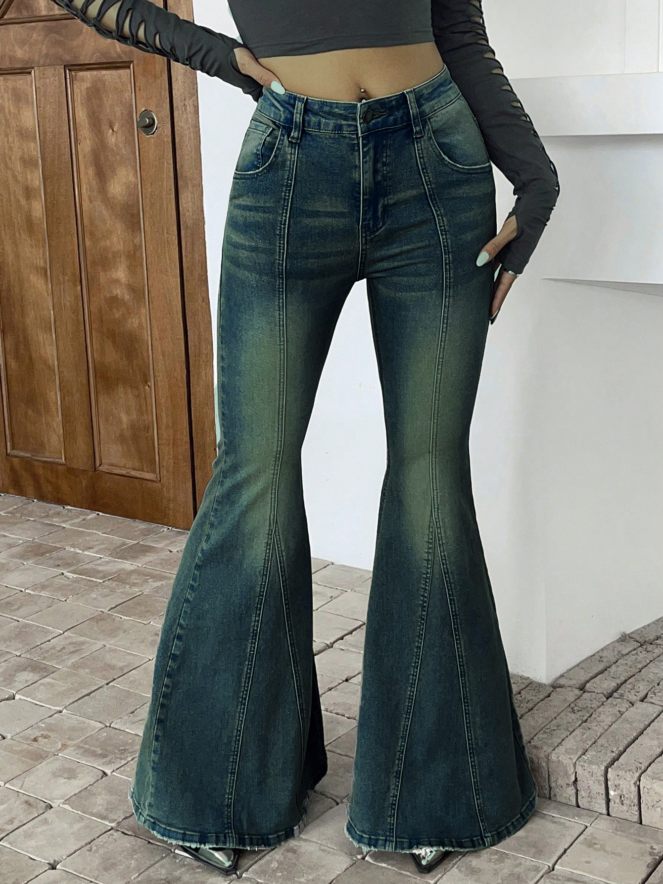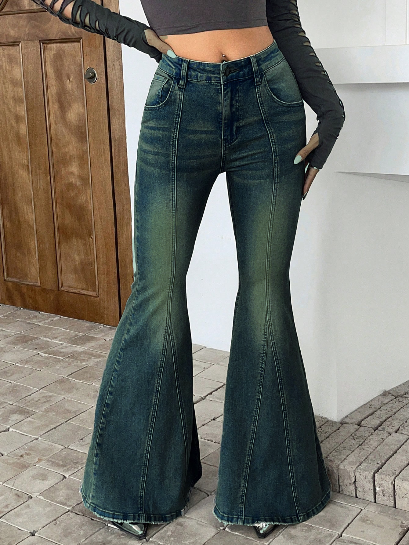 Bohemian Feels Raw Hem Stretch Flare Jeans