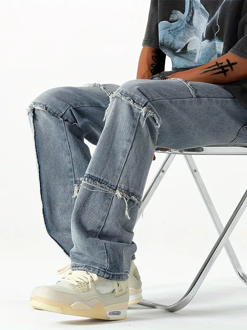 Casual Raw Trim Distressed Denim