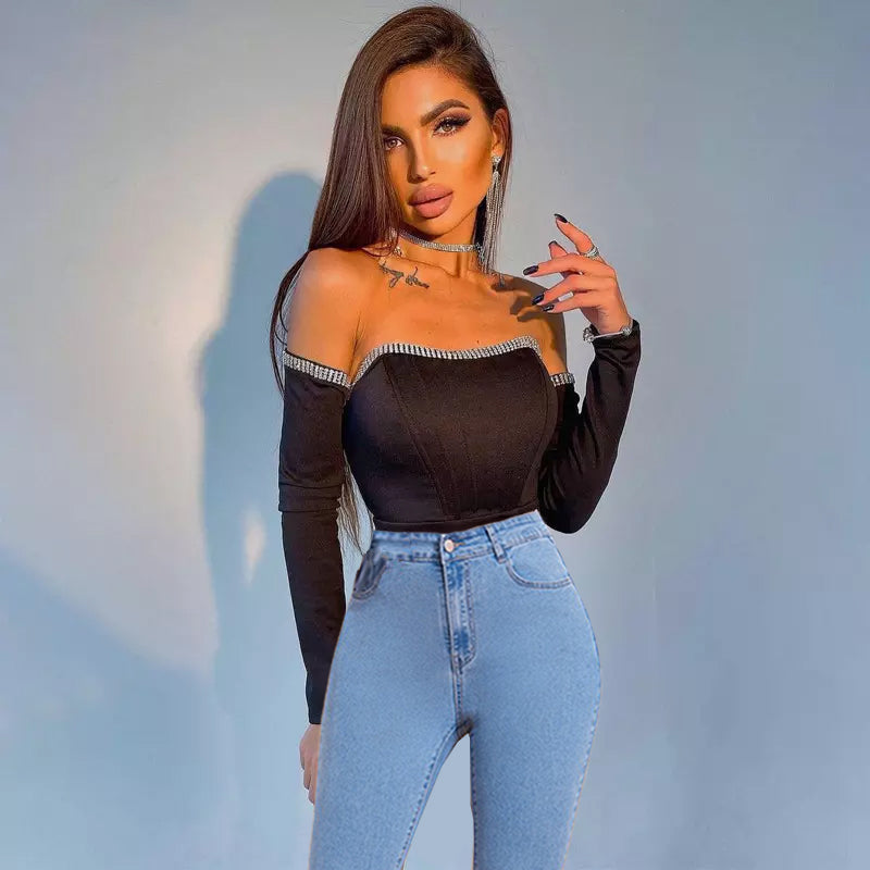 Diamond Girl Off Shoulder Full Sleeve Top