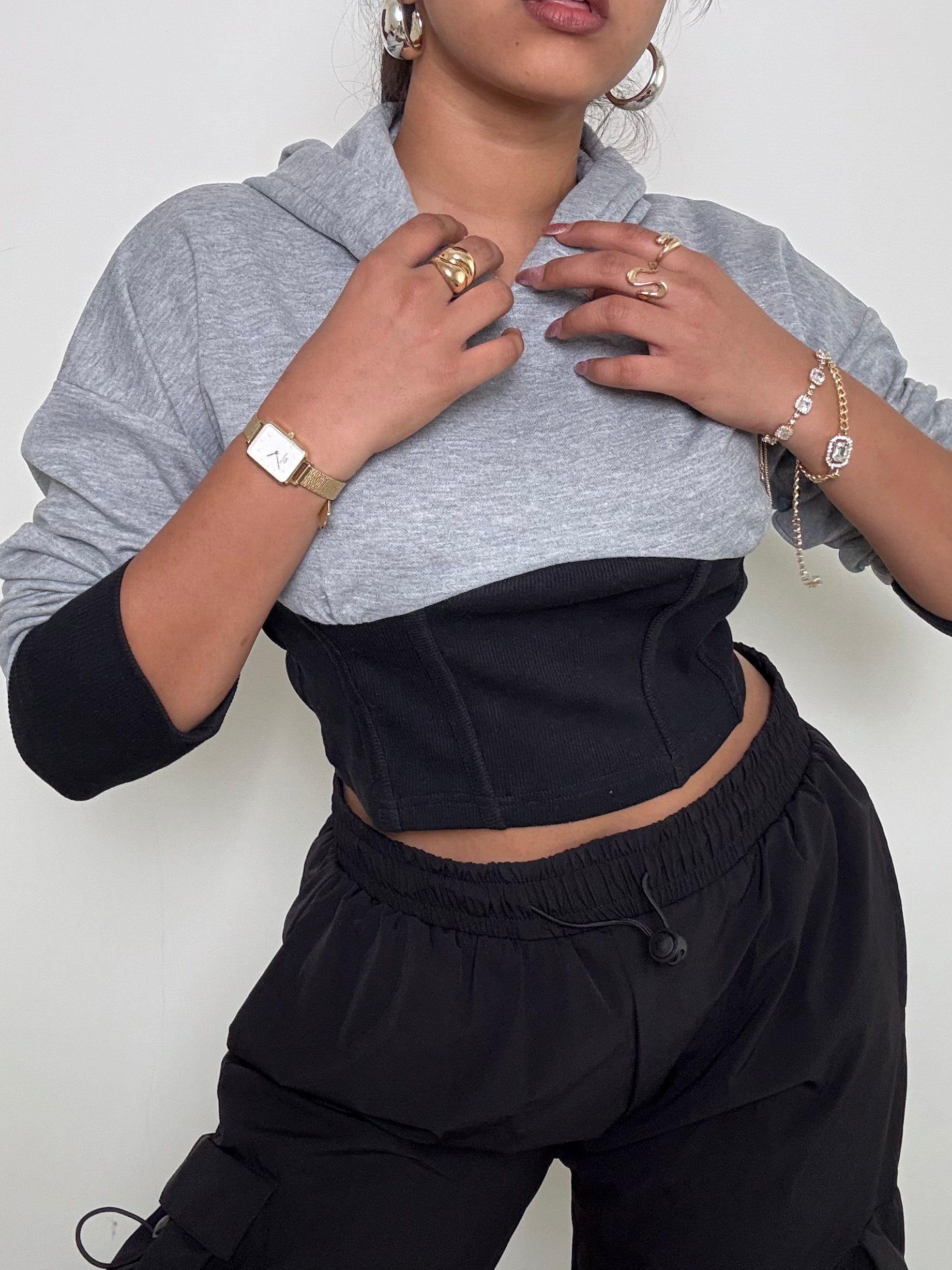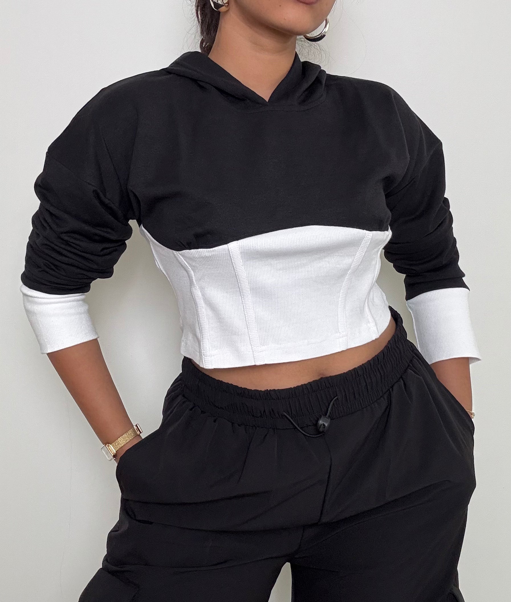 The Ease Fit Corset Hoodie offers a flattering and comfortable fit. With its unique design, this hoodie combines the functionality of a workout top with the stylish look of a corset. Its ease fit feature ensures maximum comfort, making it perfect for any activity. Upgrade your wardrobe with this versatile and trendy piece.