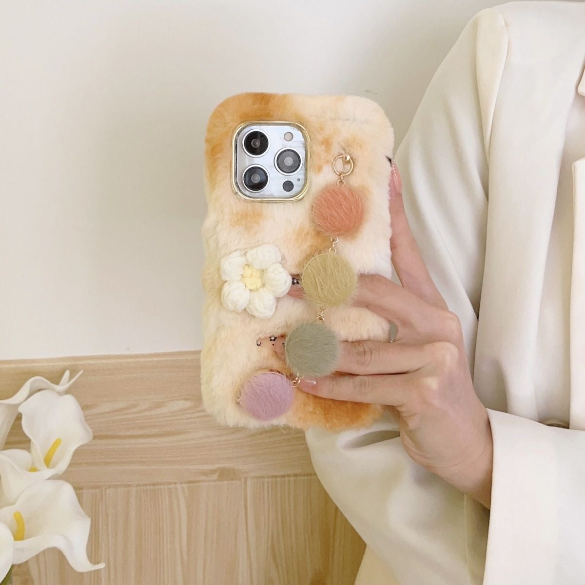 Stay cozy and stylish with this one-of-a-kind phone cover, perfect for those who love blending charm with functionality!