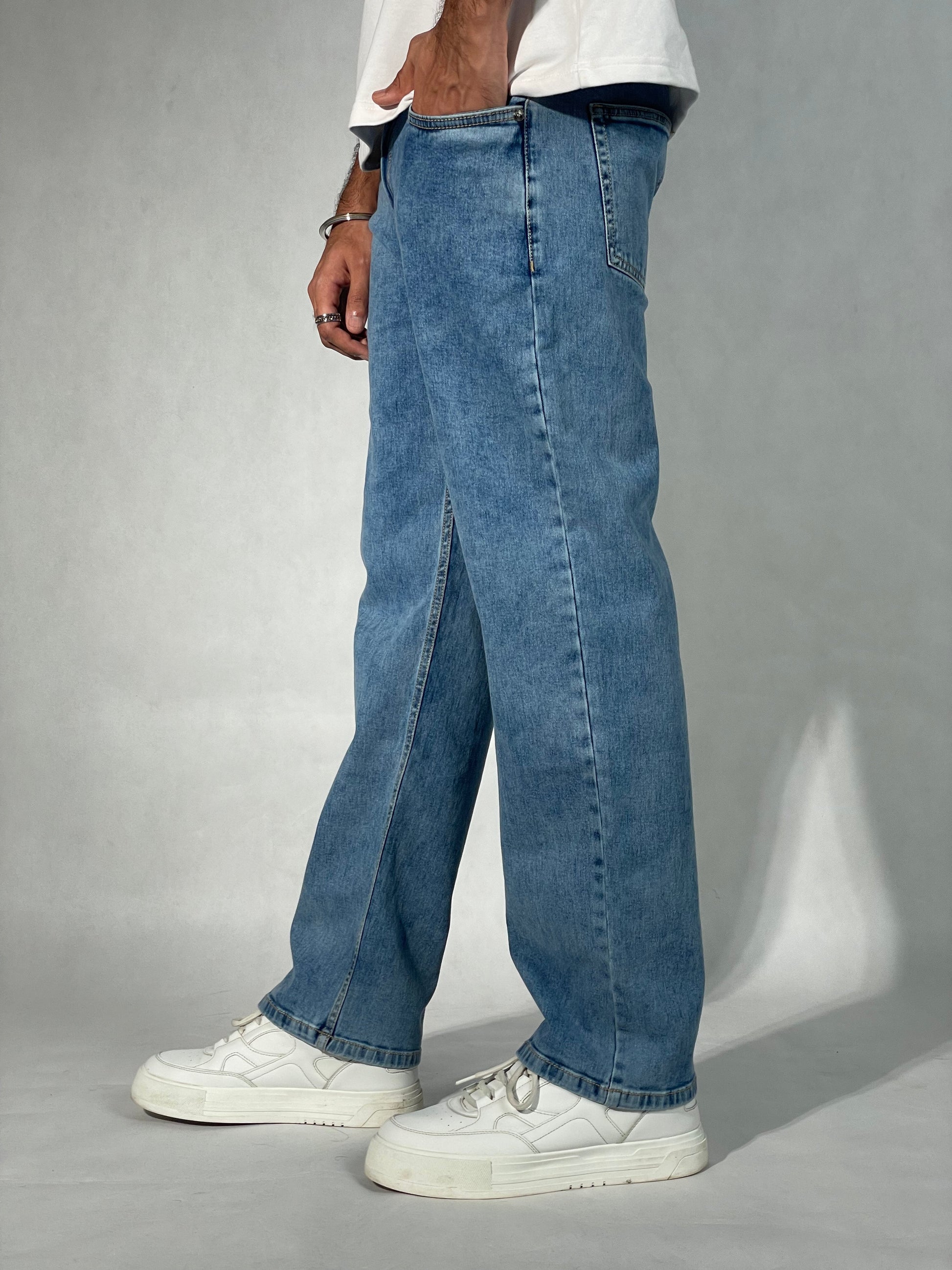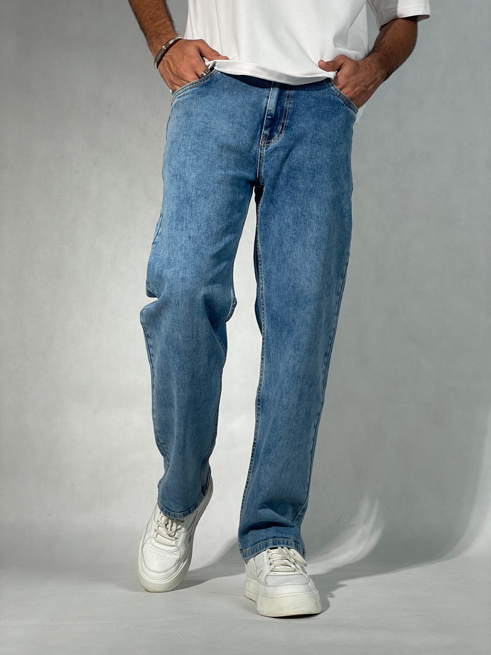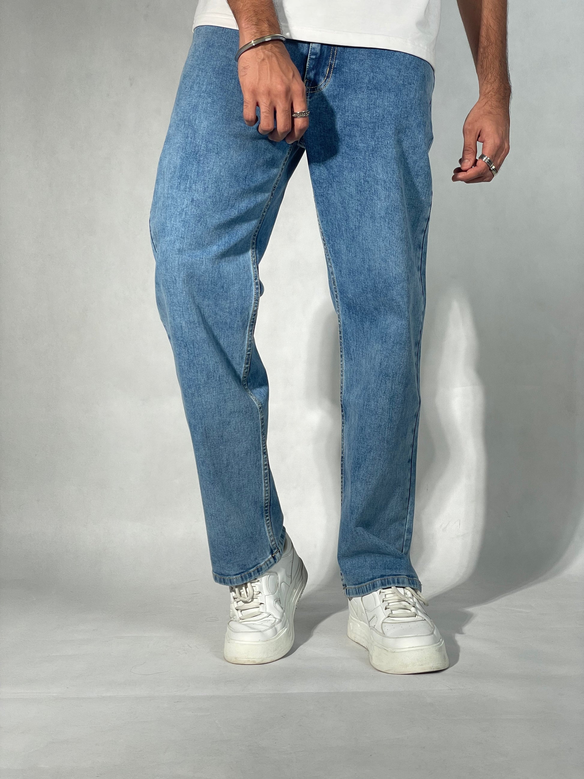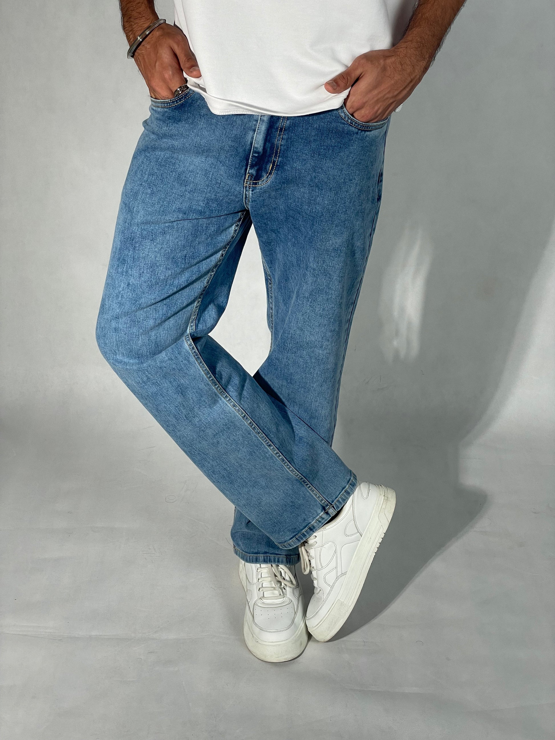 A modern wardrobe essential in a soft, faded blue—this pair blends casual effortlessness with a structured silhouette. Made from lightweight stretch denim, it offers ease of movement while maintaining a clean, straight fall. Perfect for dressing up with a crisp shirt or down with relaxed layers.