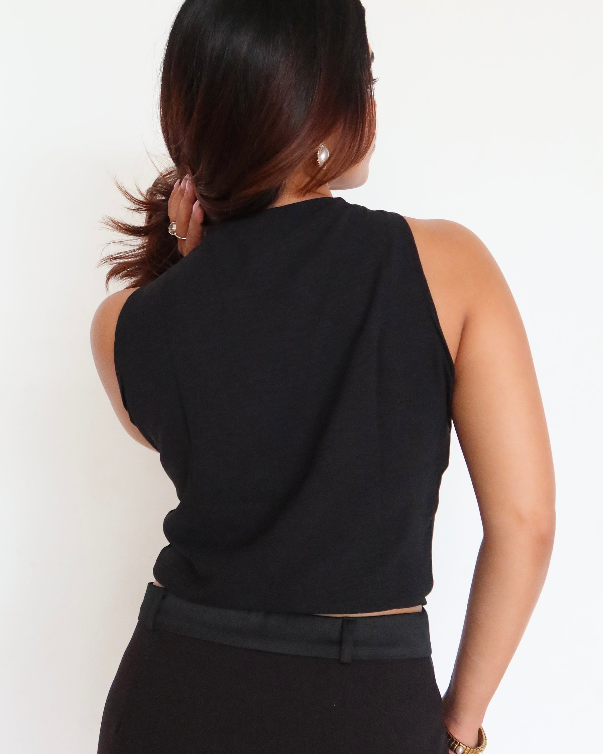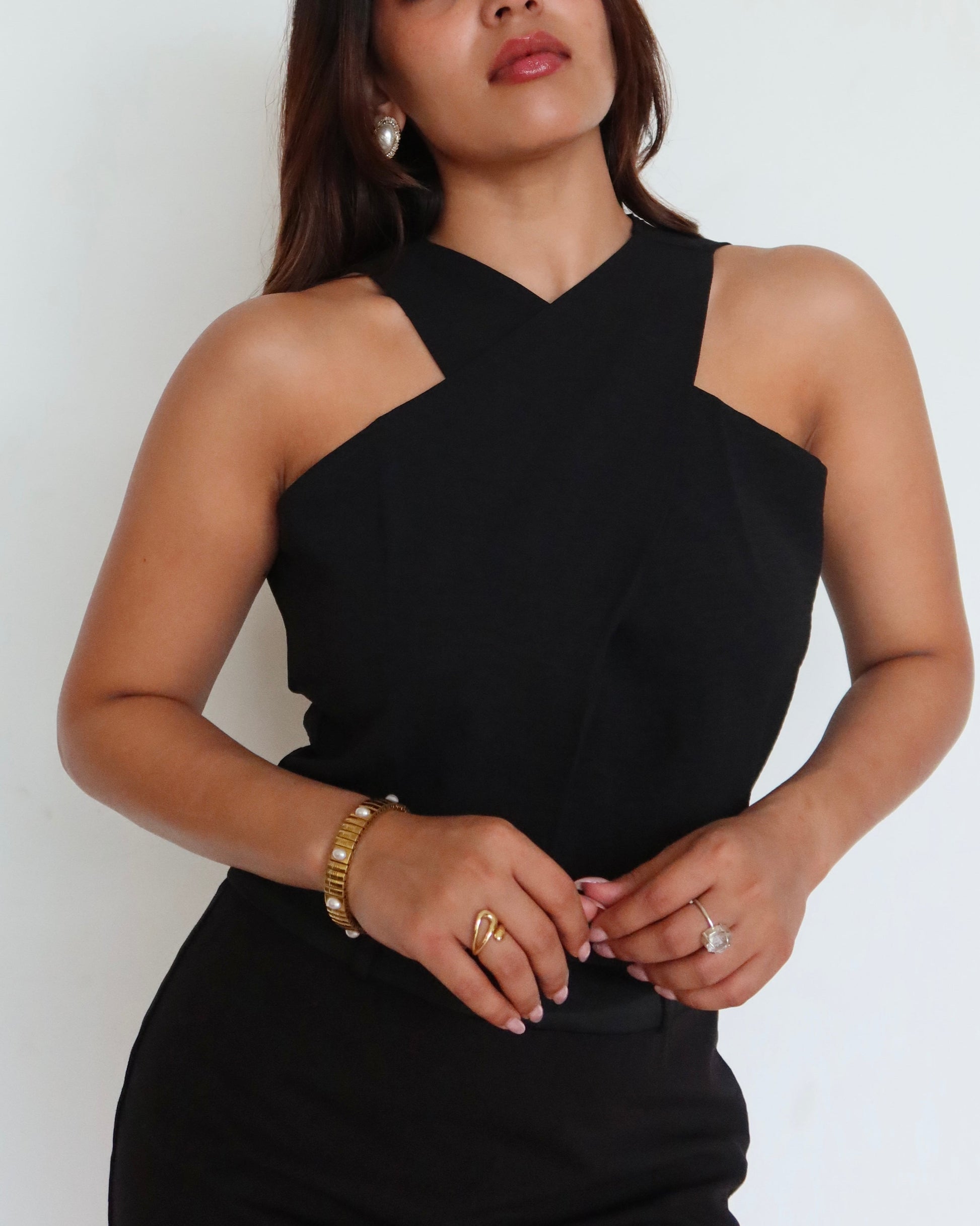 Designed with a cross-neck halter silhouette, this top brings together sculpted minimalism and relaxed drape. Crafted in AirCrêpe™, it feels feather-light with a natural crinkle texture that moves gracefully with you. The airy flow and wrinkle-friendly surface make it perfect for day-to-night wear — refined, versatile, and endlessly comfortable.