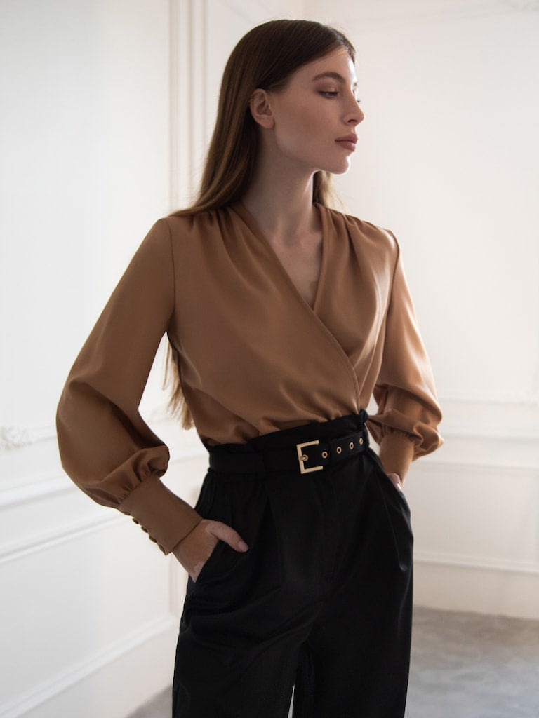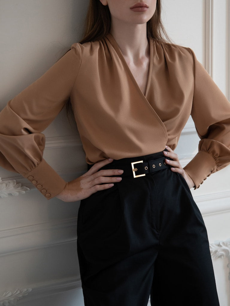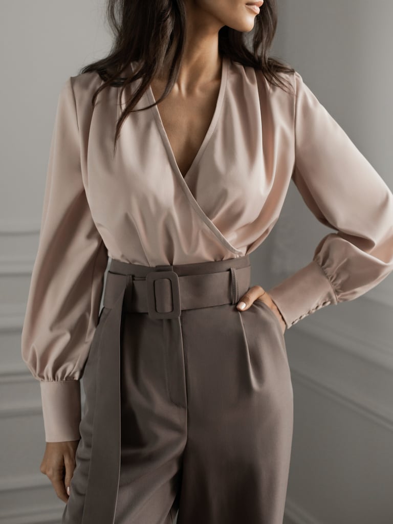 This timeless Overlap Bishop Sleeve Blouse is the perfect combination of style and sophistication for any formal occasions. With its beautiful bishop sleeves and delicate overlap design, you'll look pretty and professional.