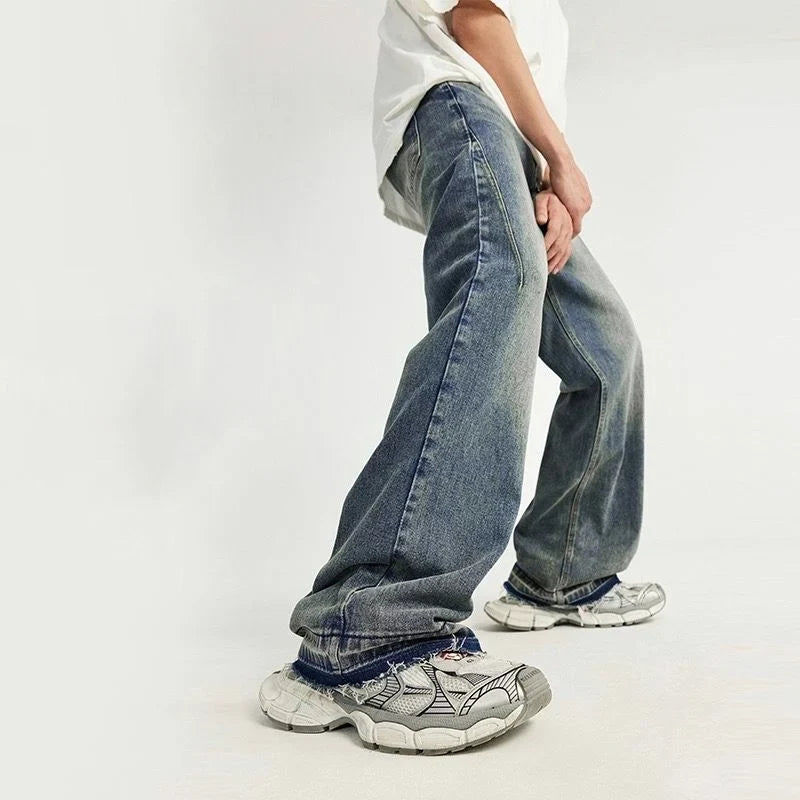 These Raw Fringed Washed Baggy Jeans boast a unique, edgy style with their fringed detailing and washed finish. Crafted from high-quality denim, these jeans offer both durability and comfort. With a loose, relaxed fit, these jeans are perfect for a casual, yet fashion-forward look.