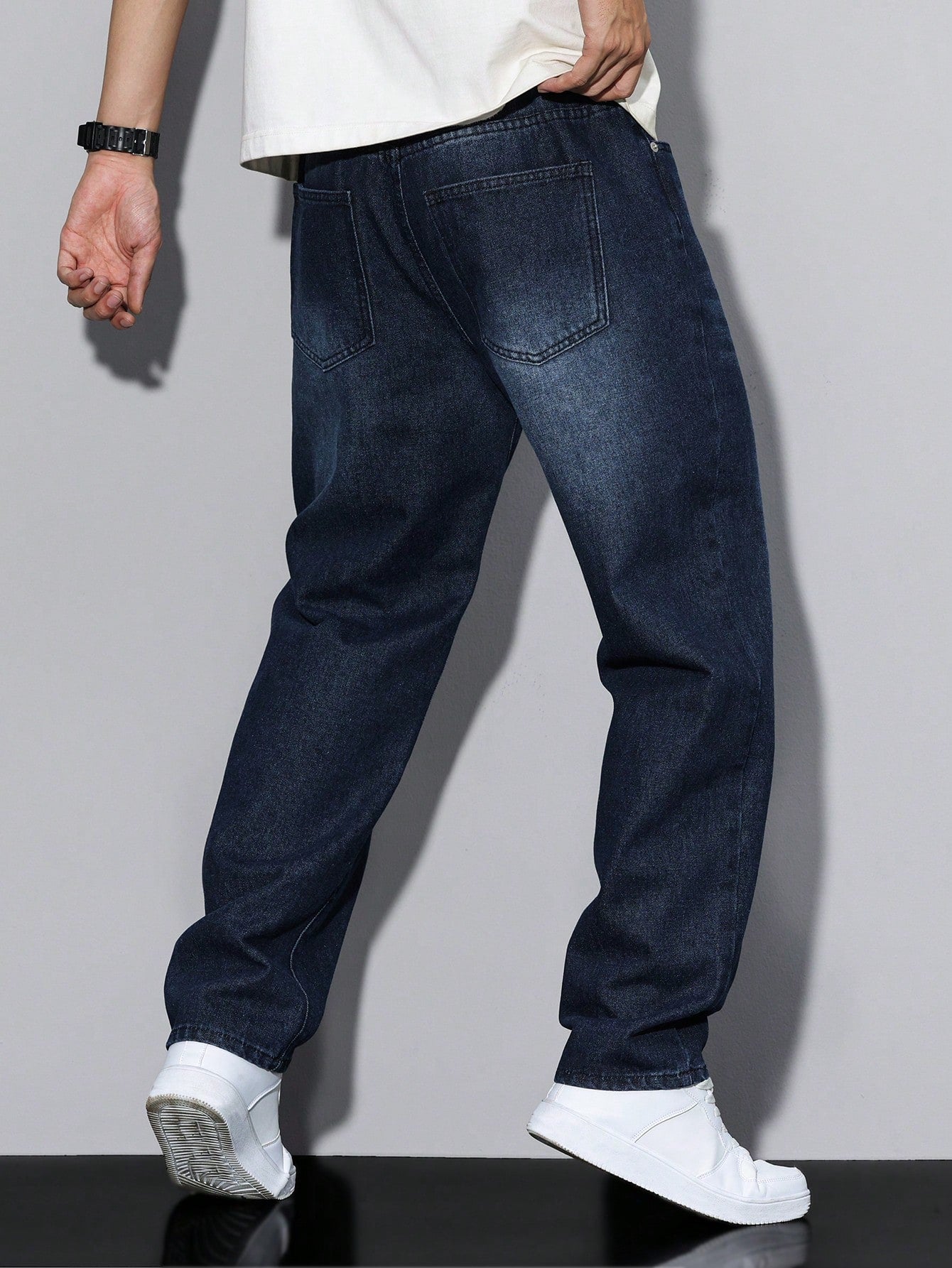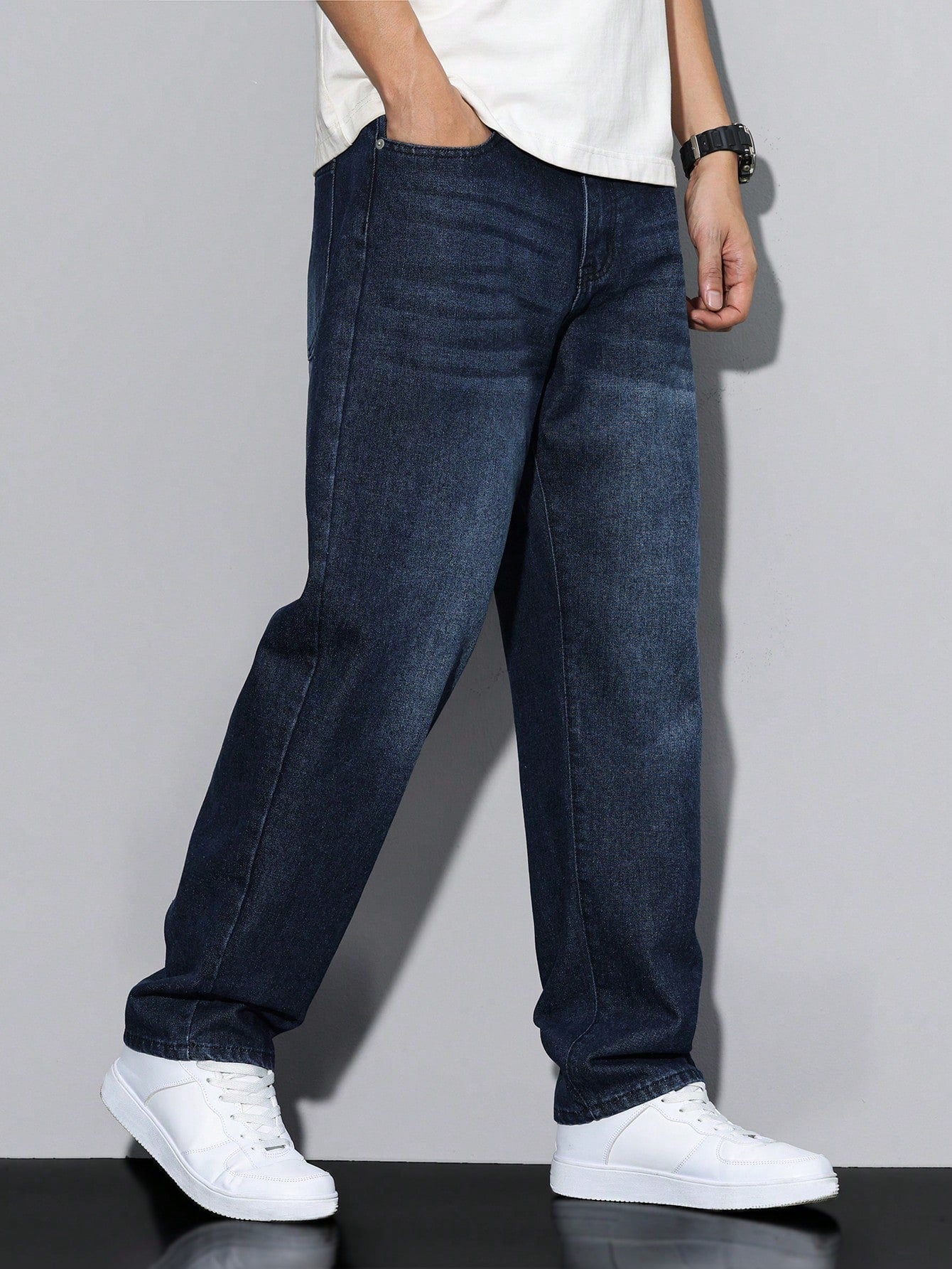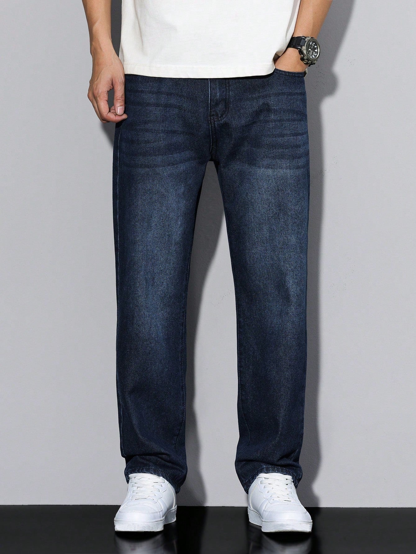 These Dark Indigo Straight-Leg Jeans deliver timeless style in a modern, relaxed cut. The deep indigo wash with subtle fading at the thighs adds dimension, making them perfect for casual or smart-casual looks.
