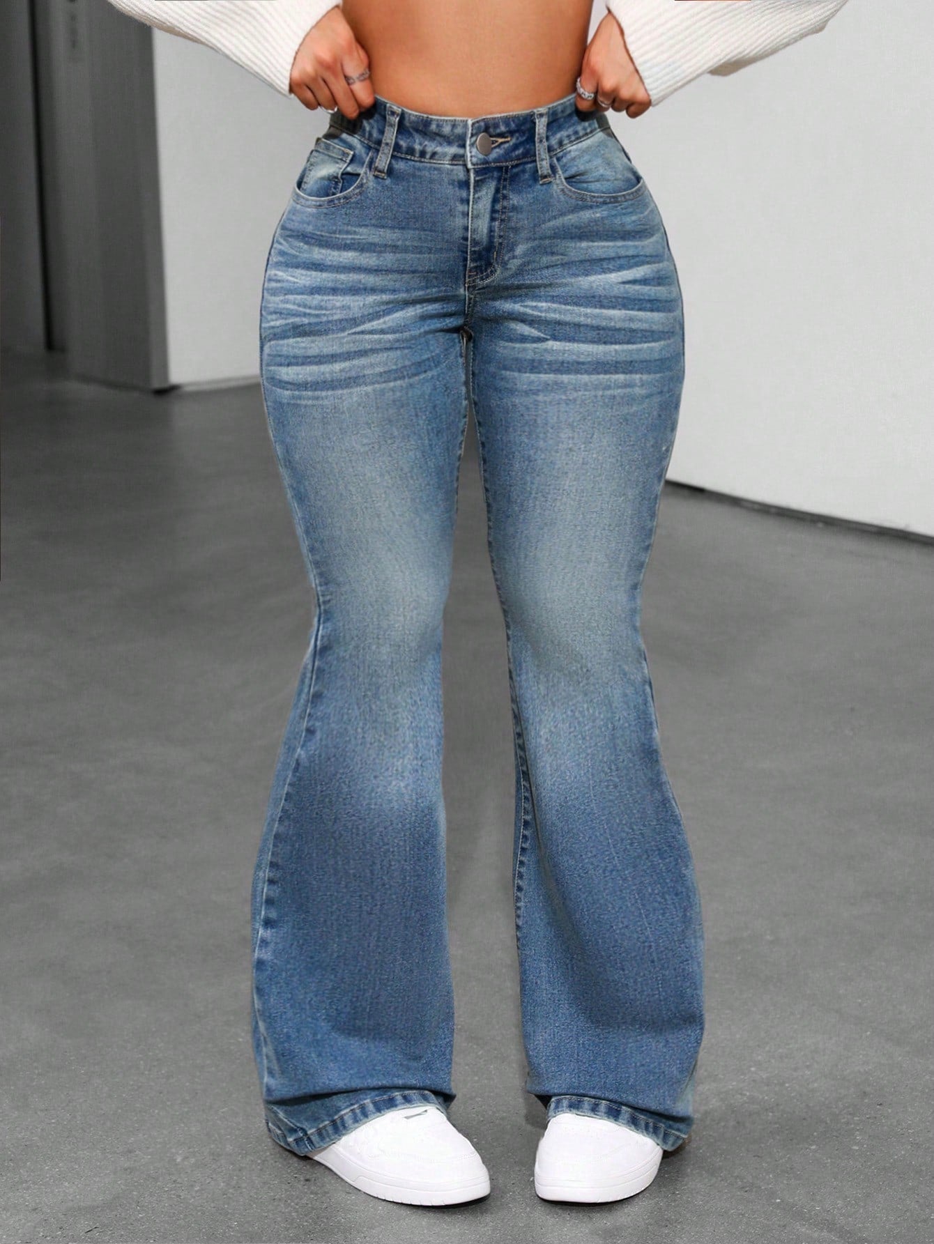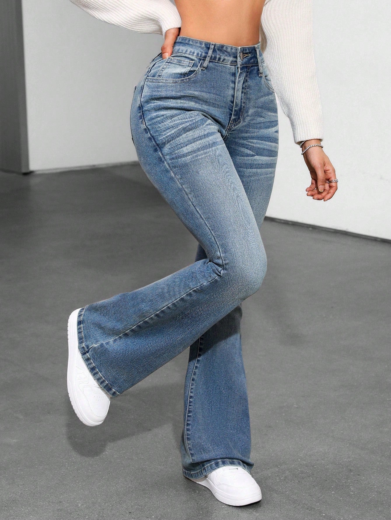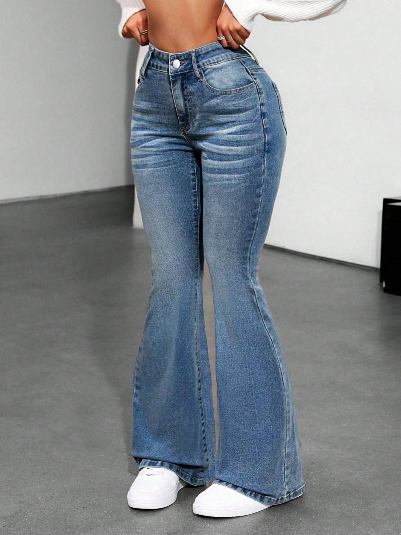 • Style: High-rise flared jeans with vintage-inspired finish
