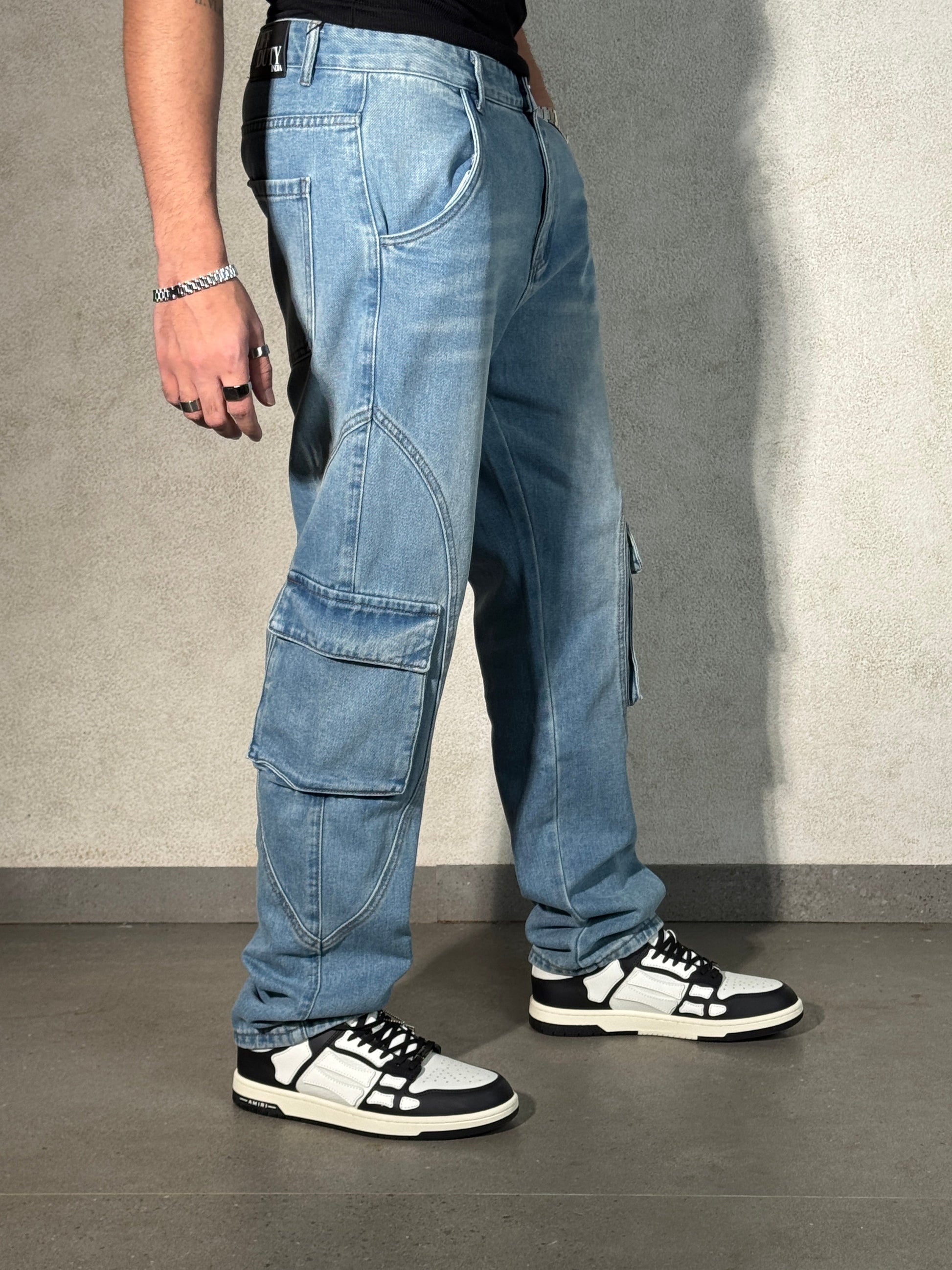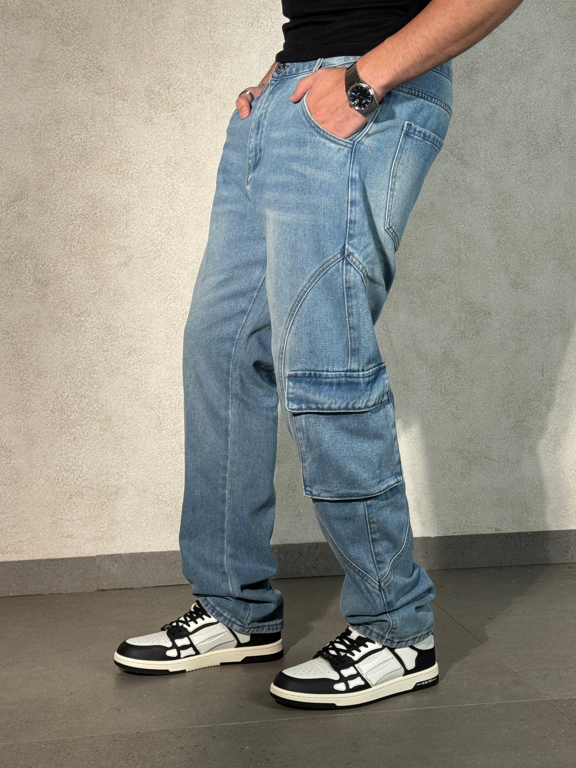 A bold fusion of utility and street style, these jeans stand out with their distinctive strike seam detailing and functional cargo pockets. Designed in a straight fit, they offer comfort and rugged style in one.