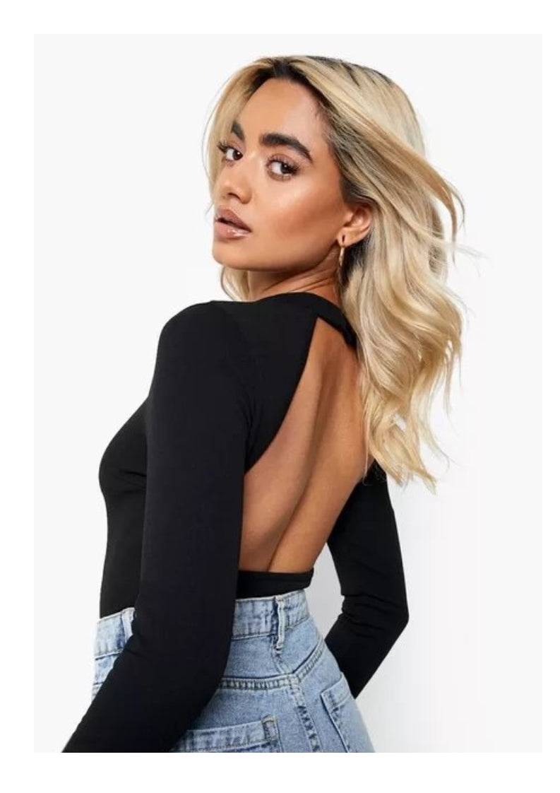 Give your wardrobe a seriously chic update with this bodysuit. Featuring an rib material with open-back design and long sleeves.