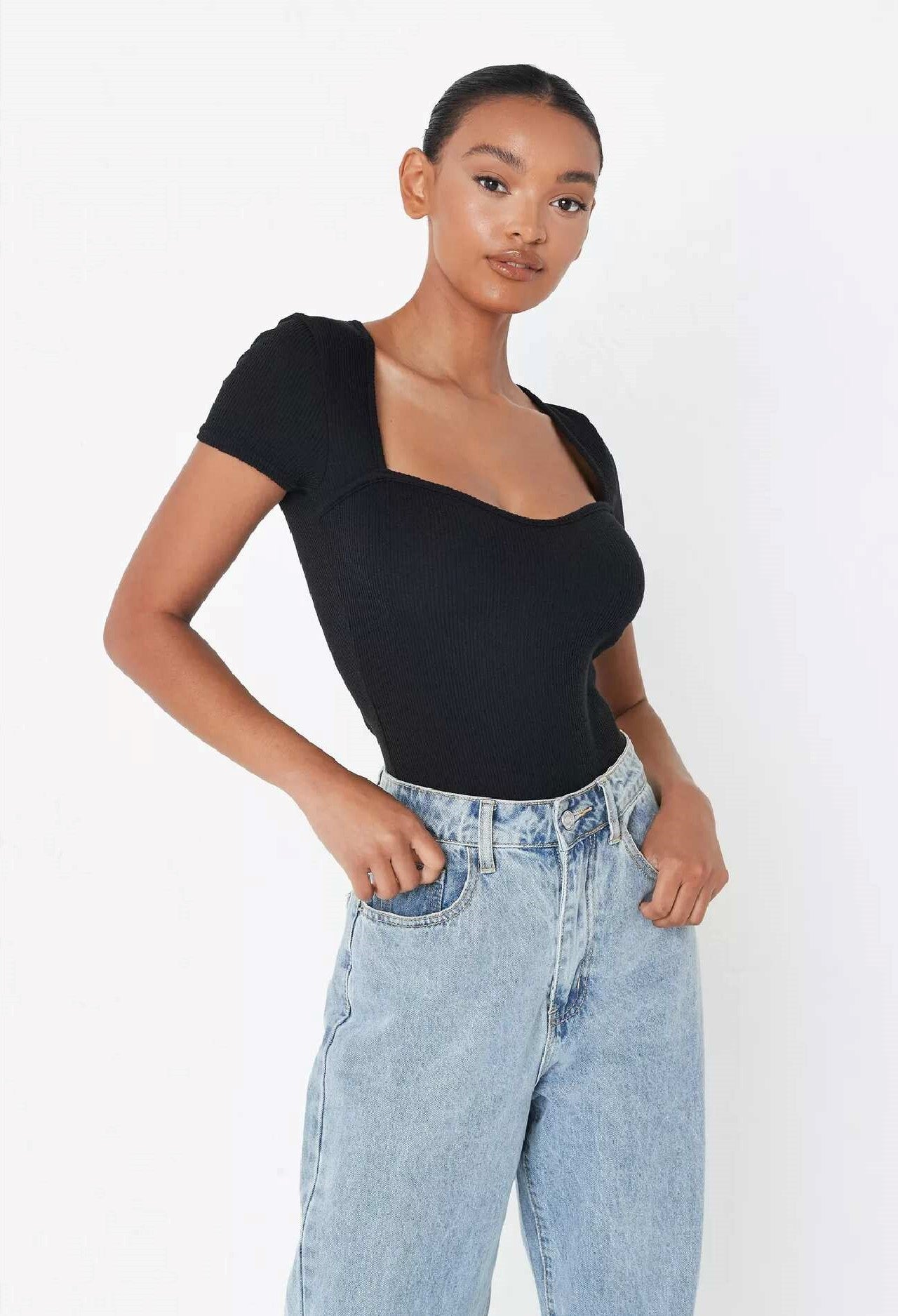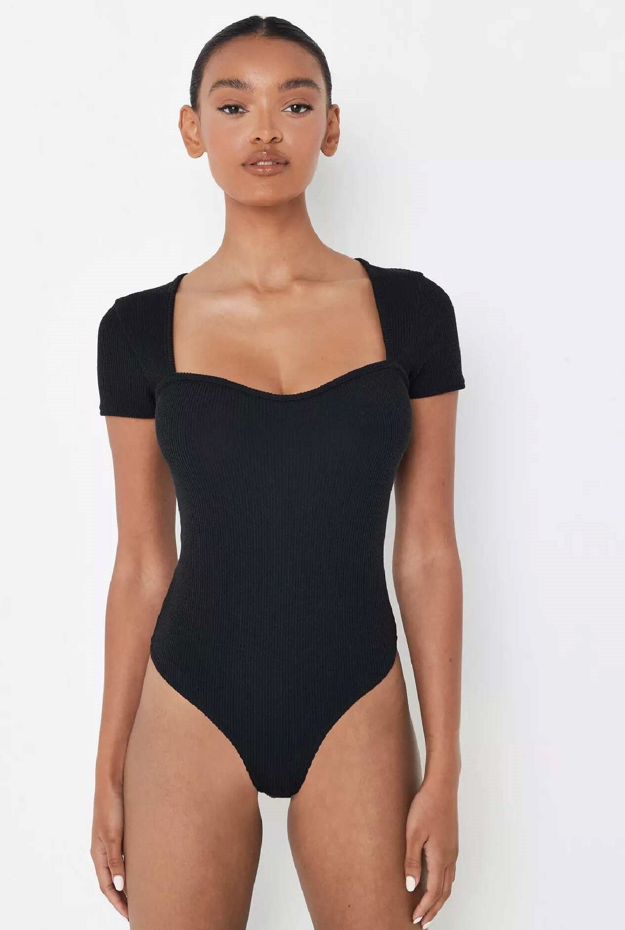 Sweetheart Neckline Short Sleeved Ribbed Bodysuit
