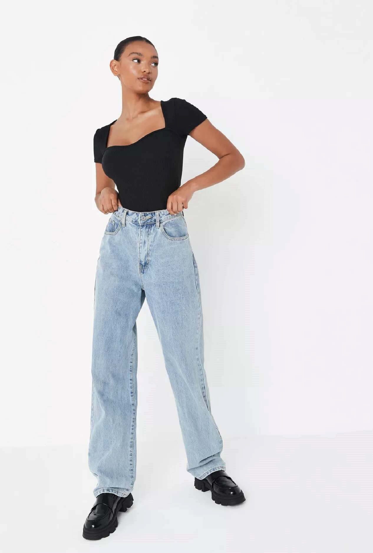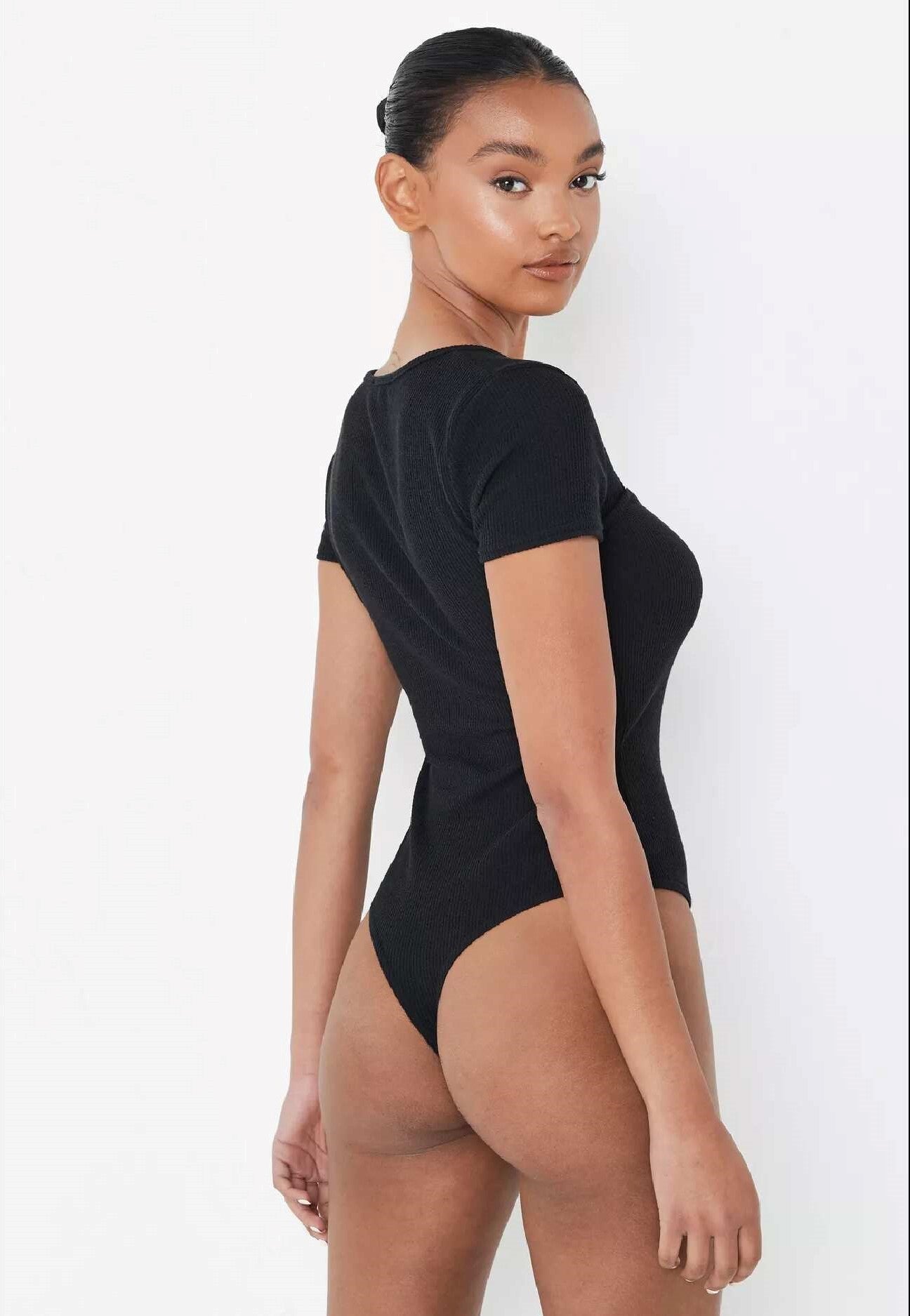 In a stretchy black material with a square neckline, long sleeves and a figure hugging fit - this bodysuit is a wardrobe essential. The simple style is easy to style it under anything.