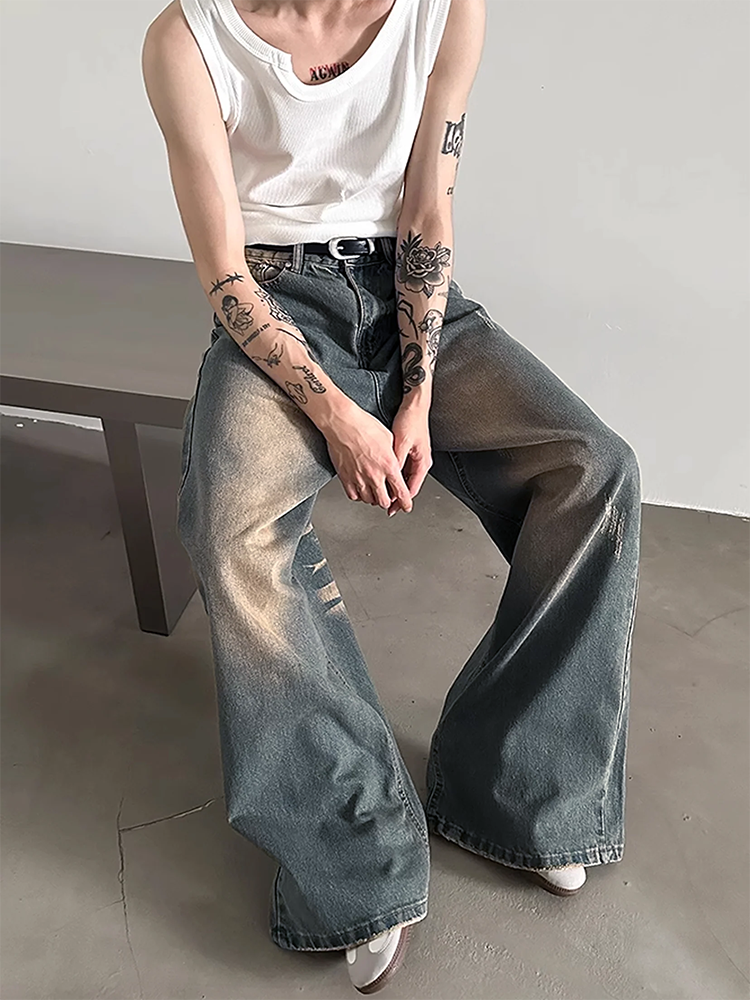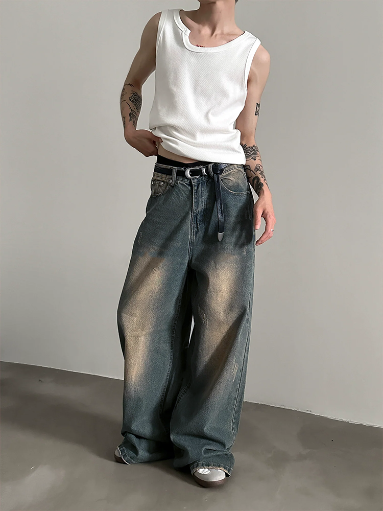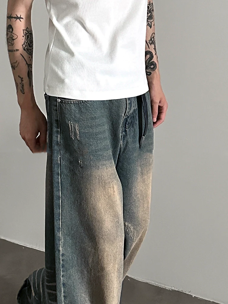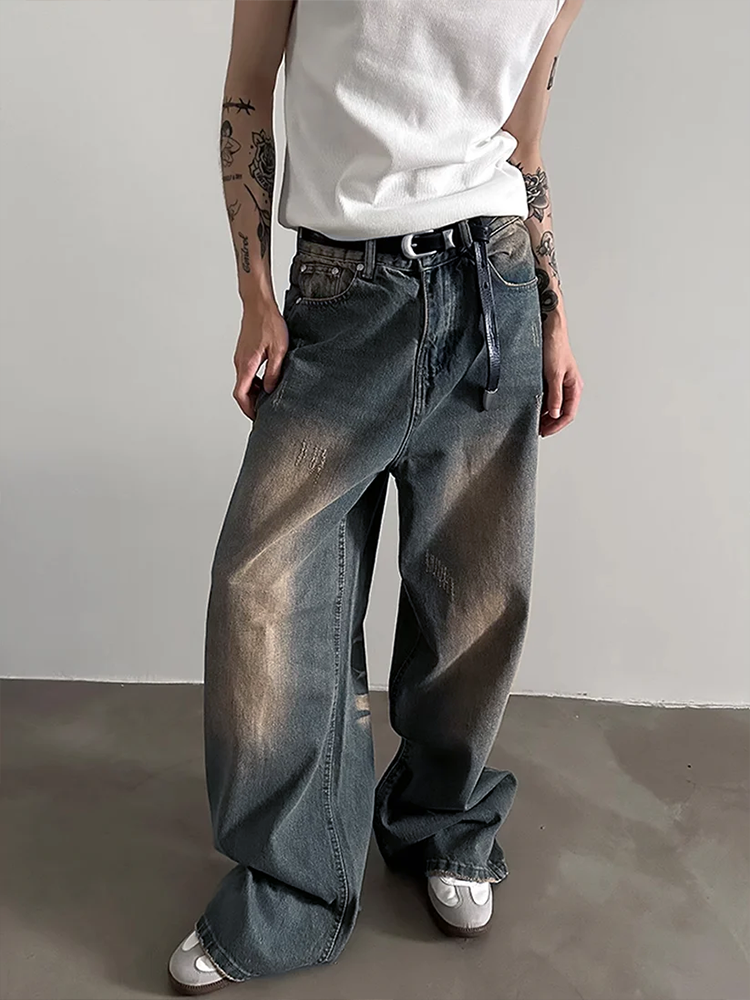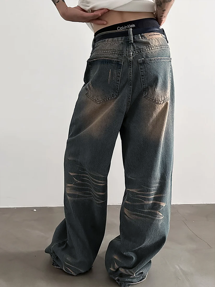 Laidback with an edge, the Grunge Spray Baggy Jeans feature a relaxed oversized fit with distressed markings and bold spray fade across the thighs.