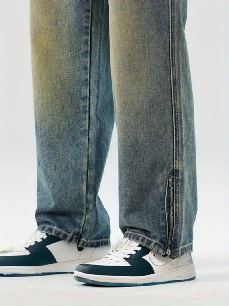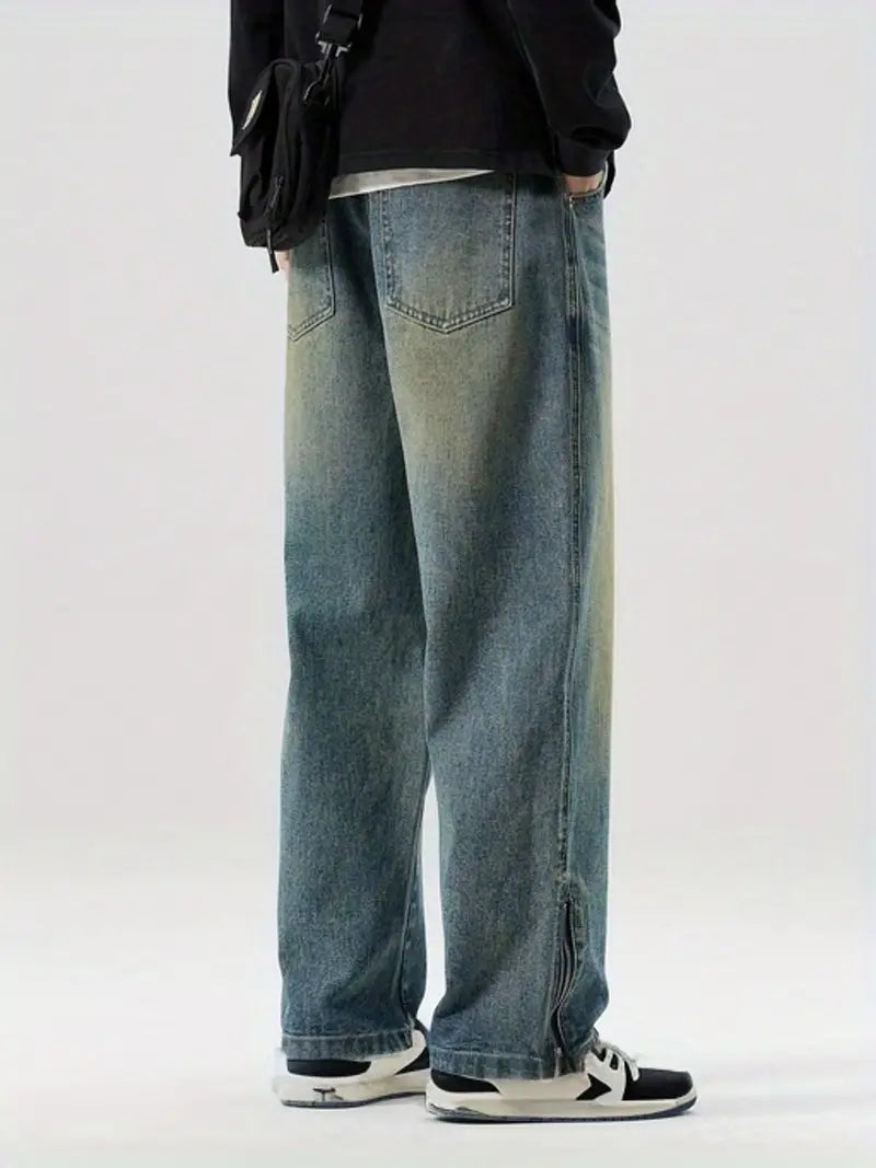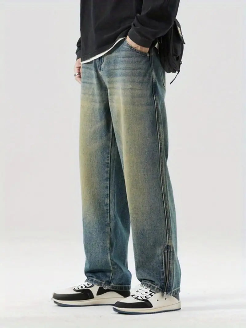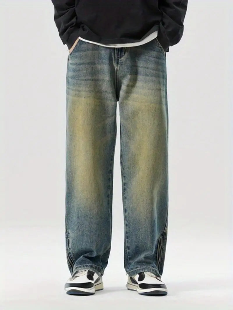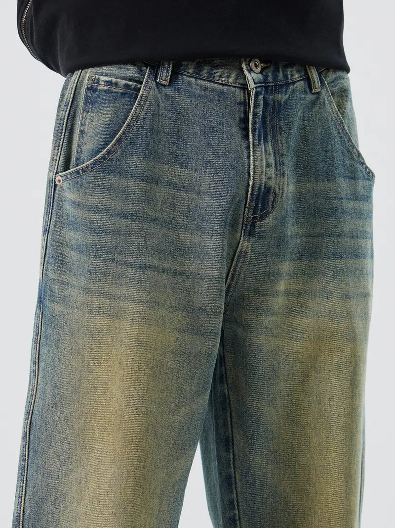 Vintage Yellowish Blue Loose Straight Fit Denim